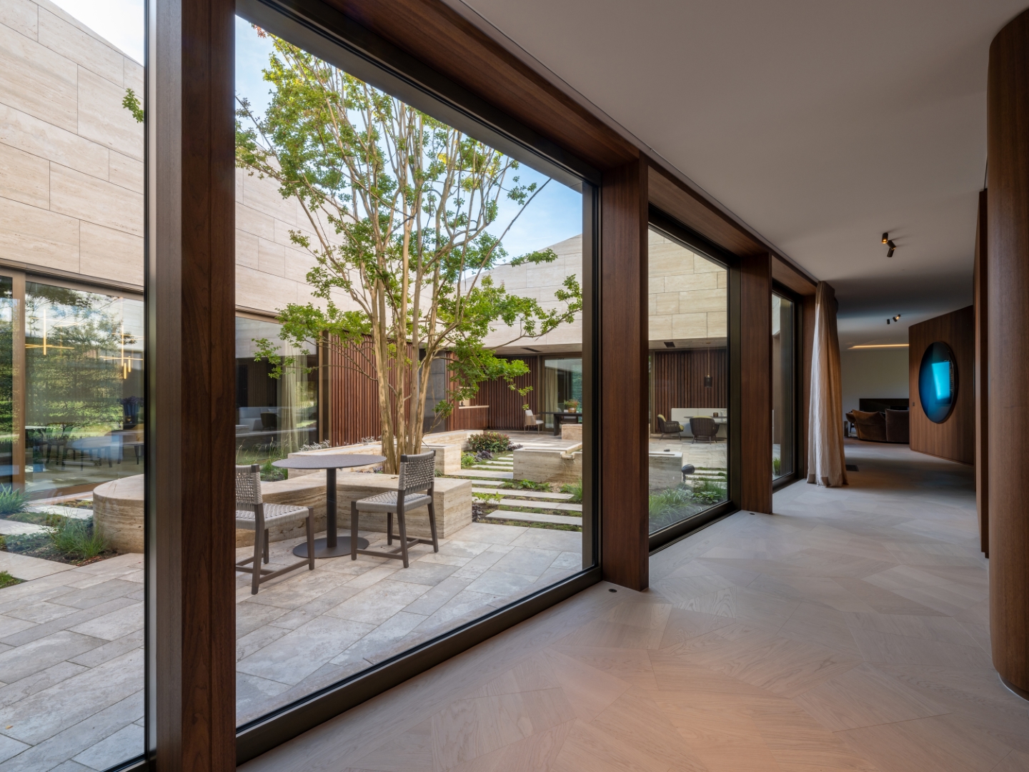 Deze unieke villa met centrale patio is geïnspireerd op de traditie van klassieke landgoederen en het kasteel wat ooit op deze locatie heeft gestaan. Een meesterlijk ontwerp van Mecanoo met een samenspel van bijzondere materialen, een hoog detail niveau, klasse en moderne techniek. Gebouwd door Van Dinther bouwbedrijf met enorm veel passie en toewijding.